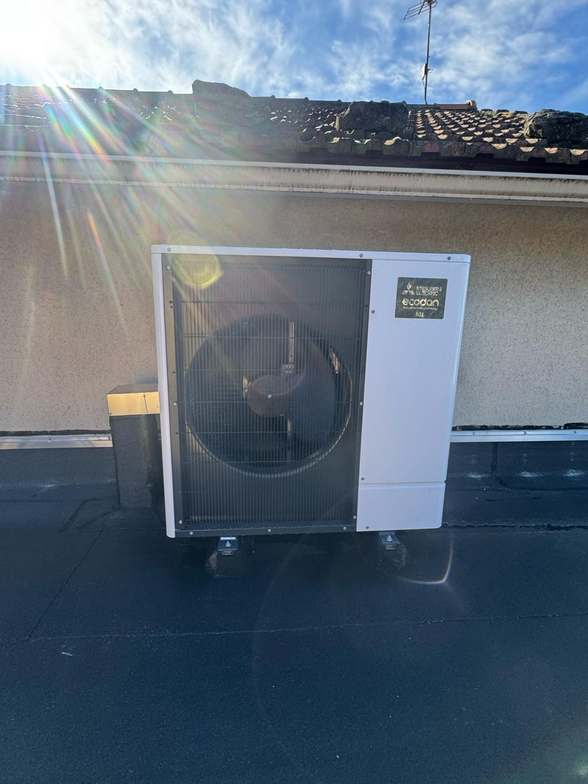 Le but de la rénovation étant de réaliser des économies d'energie, bénéficier d'une fiabilité grâces au matériel performant de la marque Mitsubishi et de bénéficier d'un confort d'utilisation comparé à l'ancien système. La pose du groupe extérieure a été pensée de manière à ce qu'il soit le moins visible possible. La particularité de ce matériel sont ses hautes performances énergétiques ainsi que son faible niveau sonore.