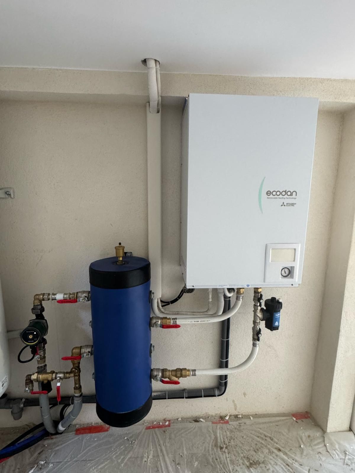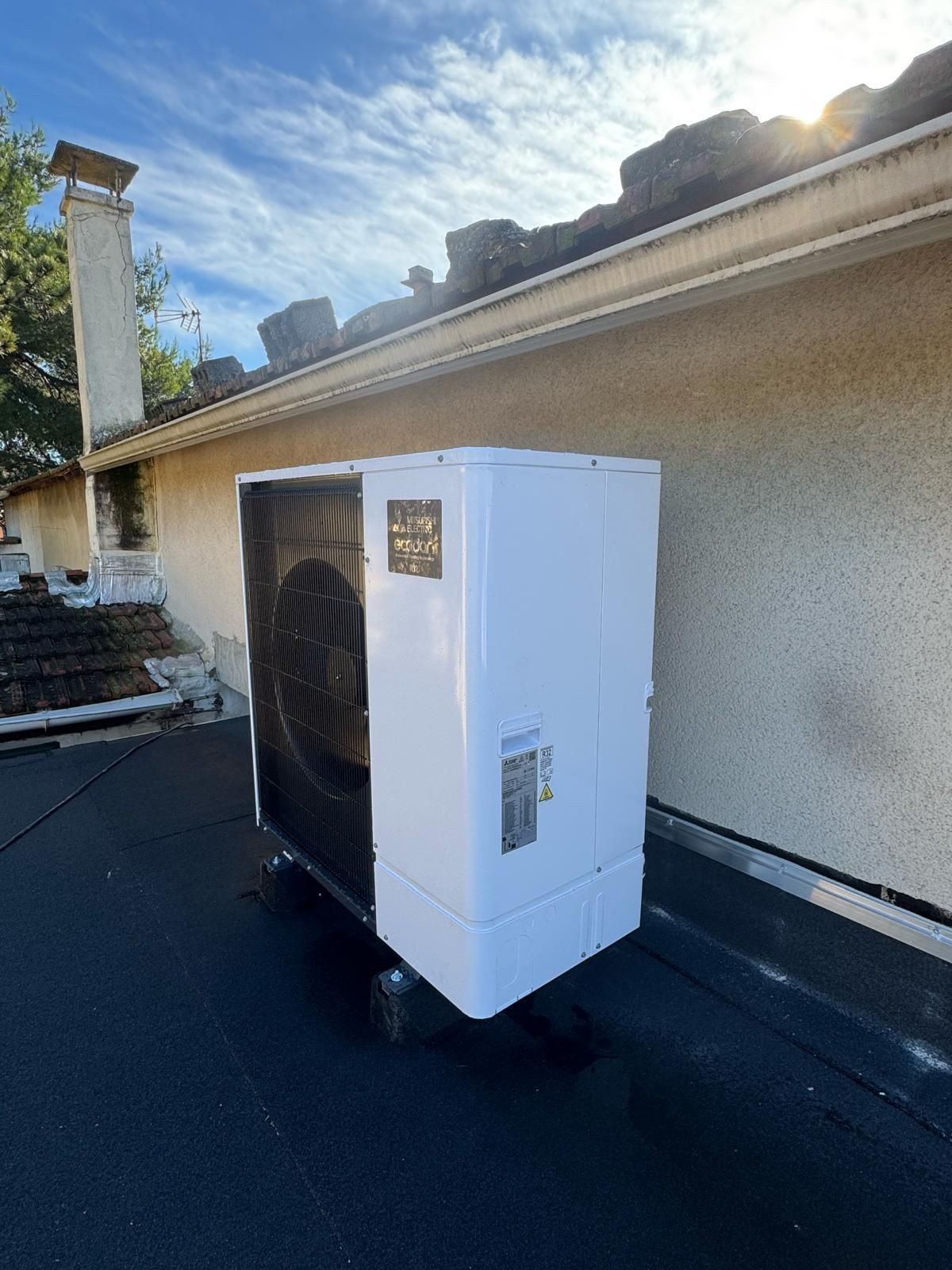 Installation d'une pompe à chaleur air eau Mitsubishi au Pontet réalisé dans le cadre d'un chantier de rénovation énergetique. Nous avons remplacé la chaudière fioul initialement installée. Nous avons également désemboué